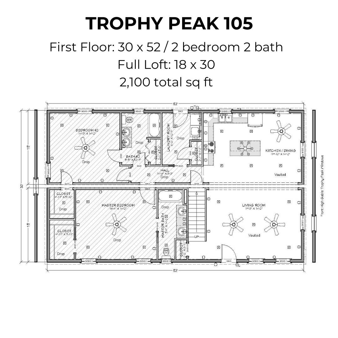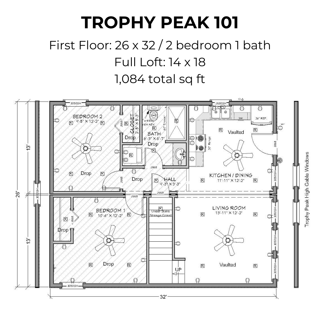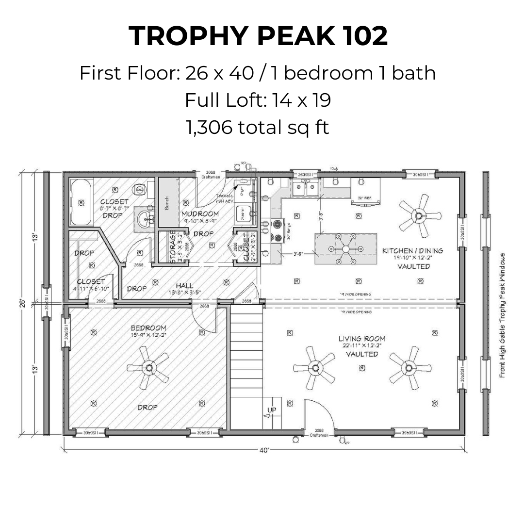 The Trophy Peak Cabin series is one of our most spacious series offerings, second only to the Lodge Cabin series in size. These cabins are built with care and craftsmanship boasting up to 5 bedrooms and a full size loft. Trophy Peak Cabins have an optional roof pitch of 6/12 or a stunning 10/12 with bonus loft featuring 8 ft. walls. Certified modular cabin floor plans with our tallest cabin series feature 1-5 bedrooms, open great rooms and modern kitchens. The Trophy Peak is for anyone who doesn’t compromise on luxury and enjoys modern amenities while experiencing natural surroundings.
