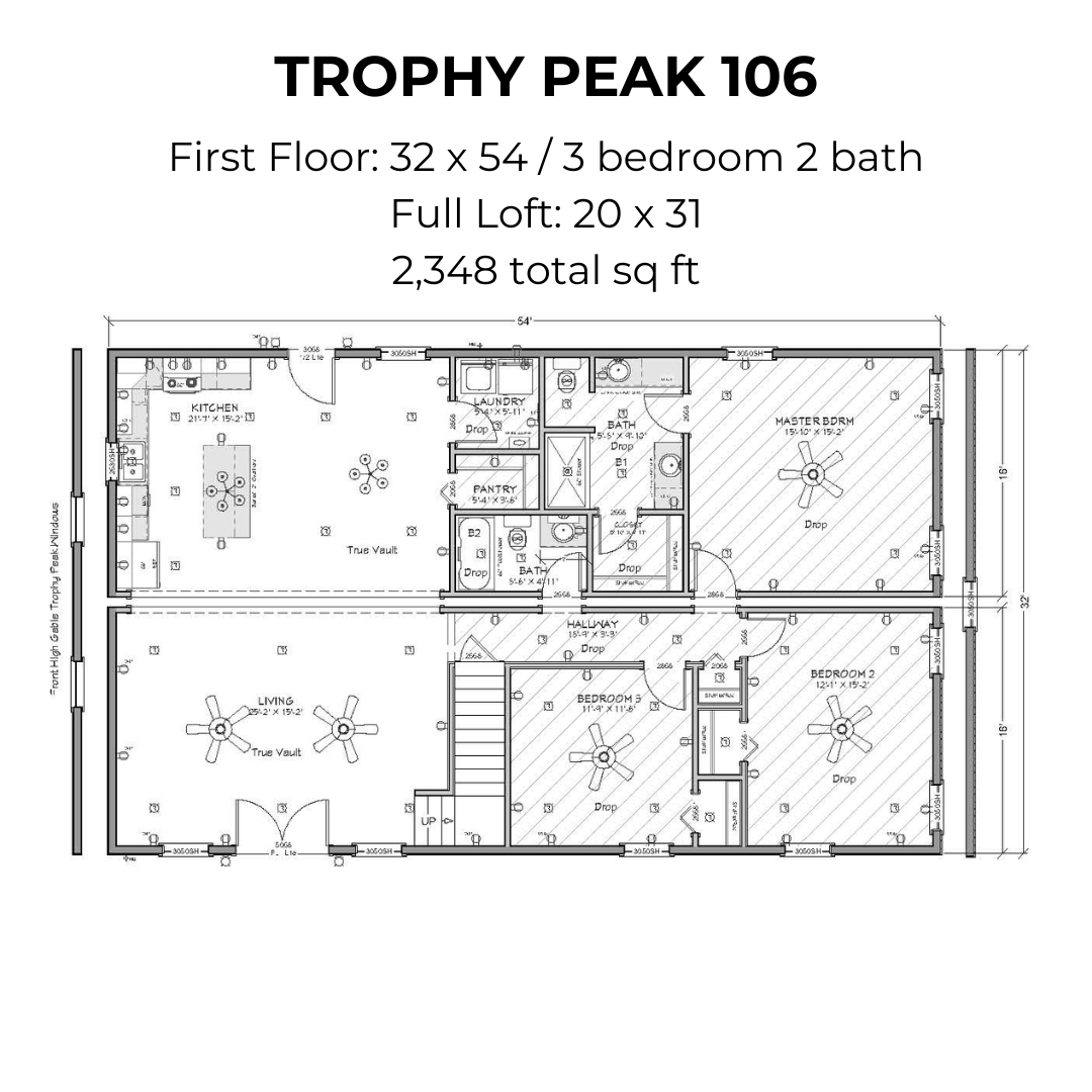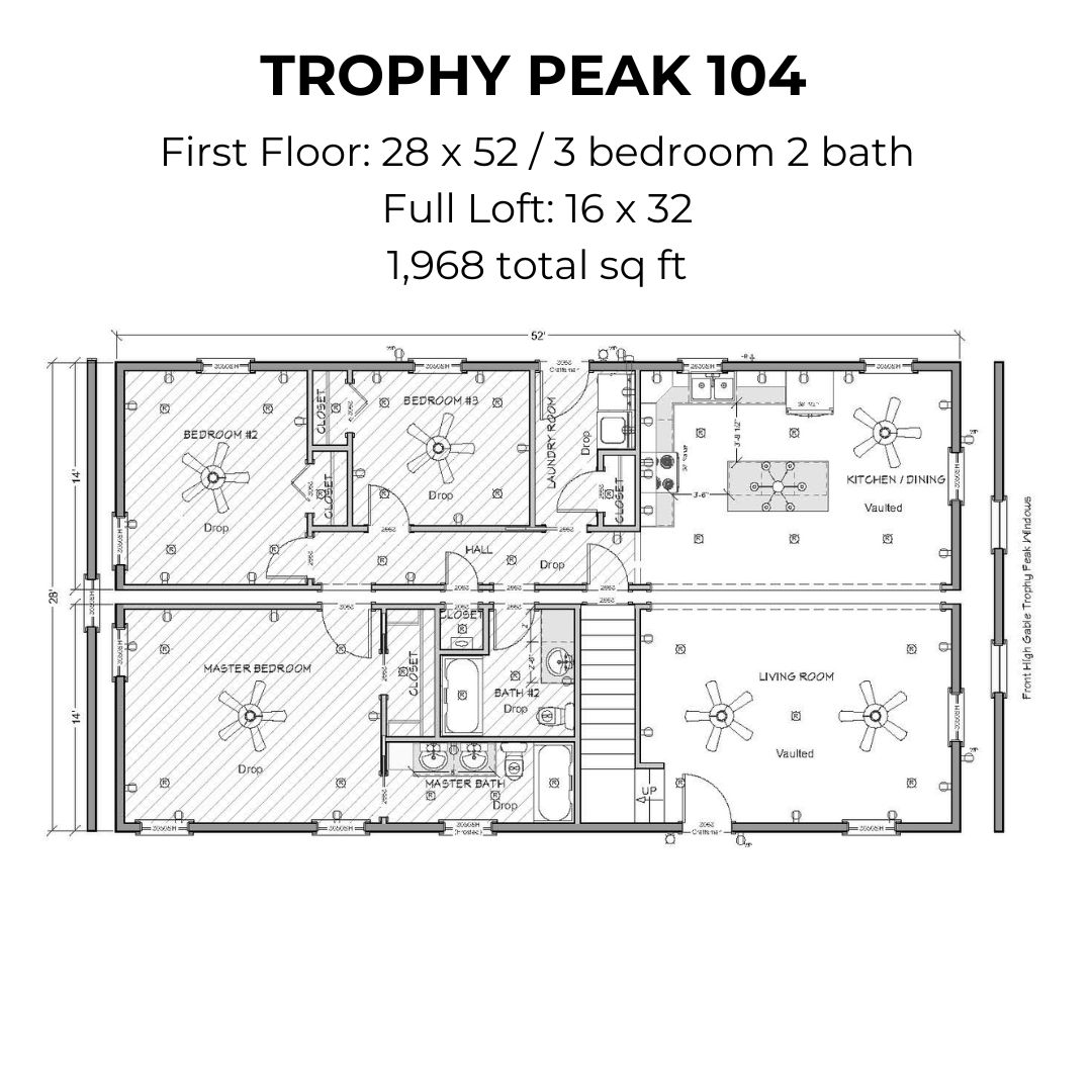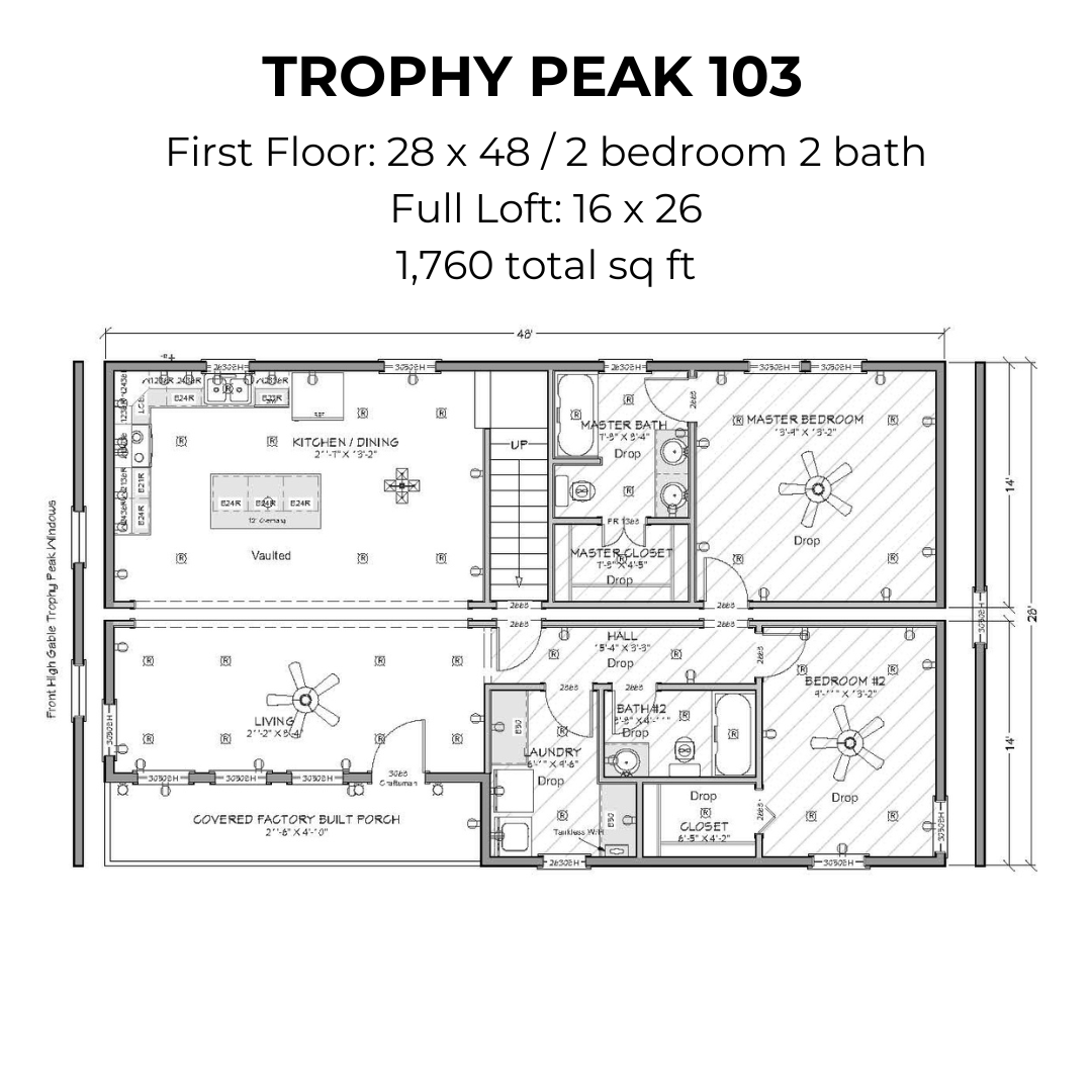 The Trophy Peak Cabin series is one of our most spacious series offerings, second only to the Lodge Cabin series in size. These cabins are built with care and craftsmanship boasting up to 5 bedrooms and a full size loft. Trophy Peak Cabins have an optional roof pitch of 6/12 or a stunning 10/12 with bonus loft featuring 8 ft. walls. Certified modular cabin floor plans with our tallest cabin series feature 1-5 bedrooms, open great rooms and modern kitchens. The Trophy Peak is for anyone who doesn’t compromise on luxury and enjoys modern amenities while experiencing natural surroundings.